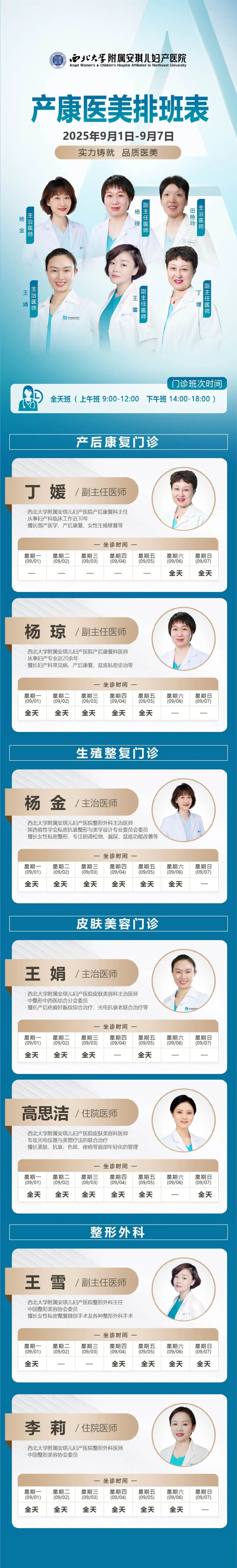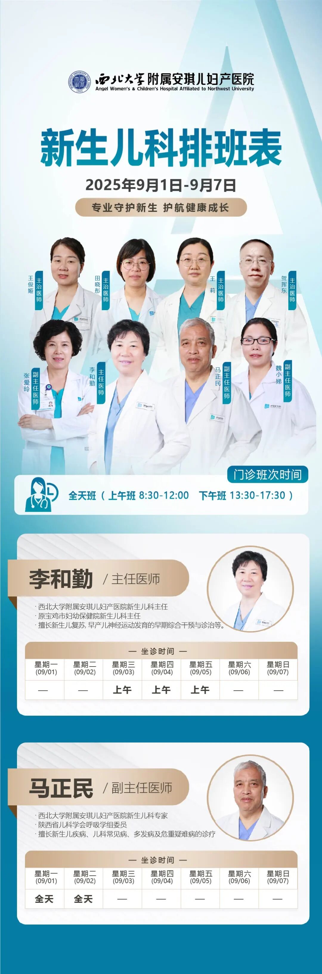 西安安琪儿妇产医院(9月1日至9月7日)专家坐诊时间表