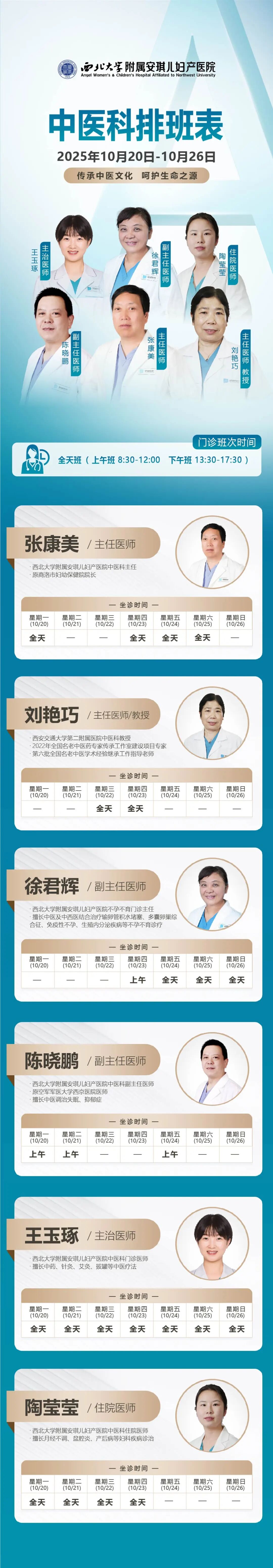 西安安琪儿妇产医院(10月20日至10月26日)专家坐诊时间表