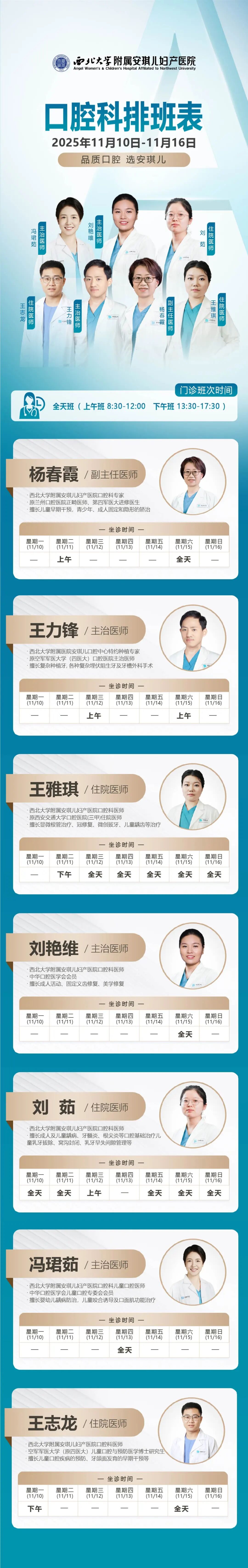 西安安琪儿妇产医院(11月10日至11月16日)专家坐诊时间表