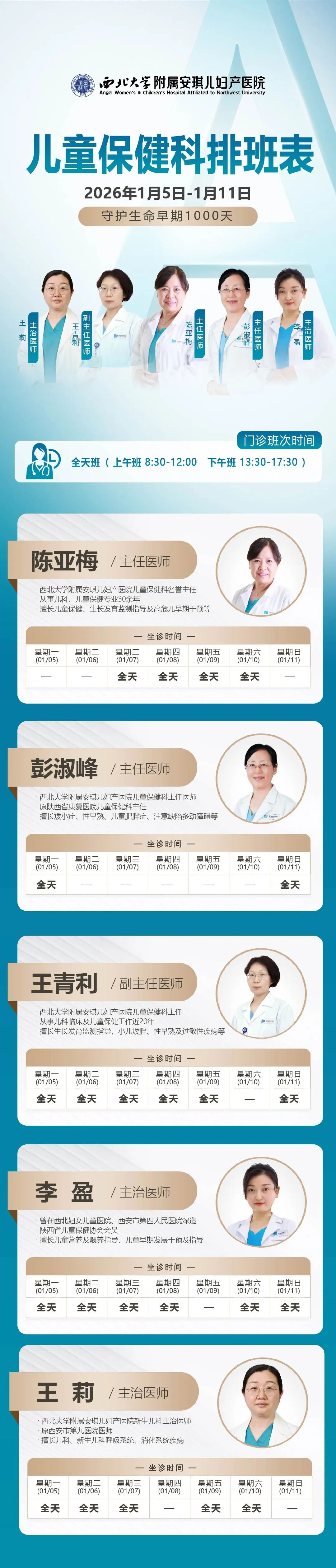 西安安琪儿妇产医院(1月5日至1月11日)专家坐诊时间表