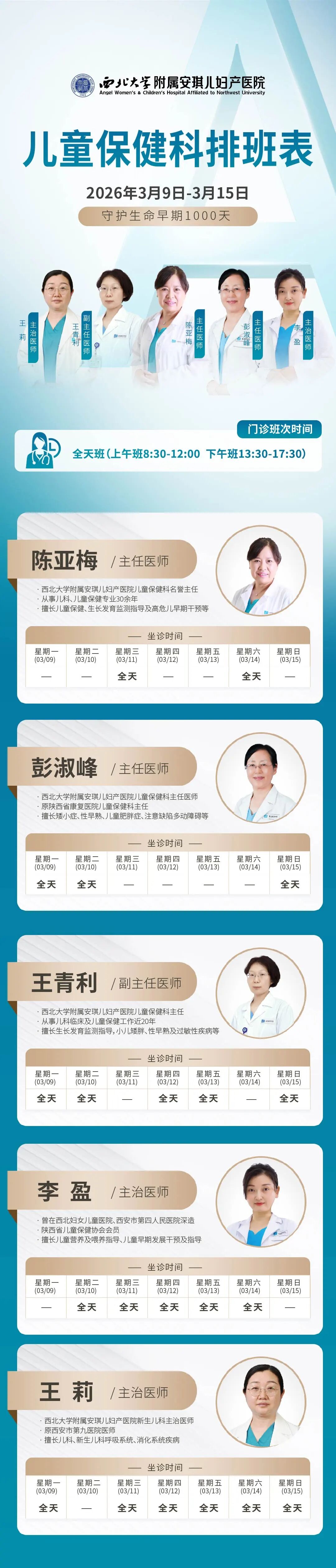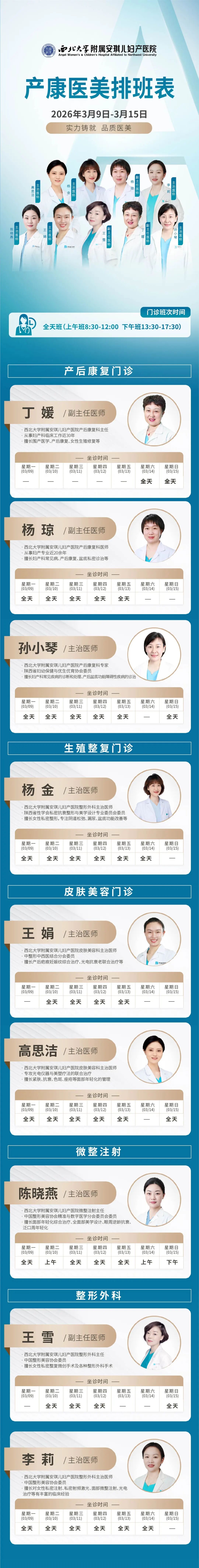 西安安琪儿妇产医院(3月9日至3月15日)专家坐诊时间表
