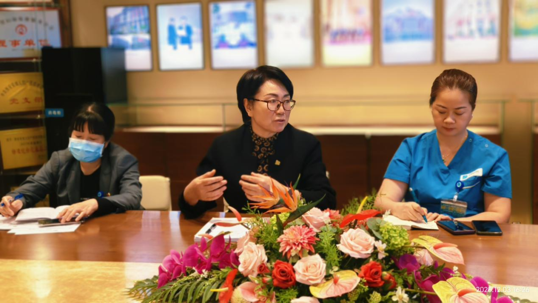 12月3日下午,我院护理部组织召开护士长工作会议。会议由护理部主任白贝主持,妇幼专家韩春玲、院感办主任杨丽华、门诊部主任党艳娜及各临床科室护士长共同出席。会议围绕年度工作总结、护理人文关怀深化、爱婴医院建设、集团迎检准备及2026年护理工作规划等核心议题展开研讨与部署,为明年护理工作的高质量发展锚定方向、凝聚合力。